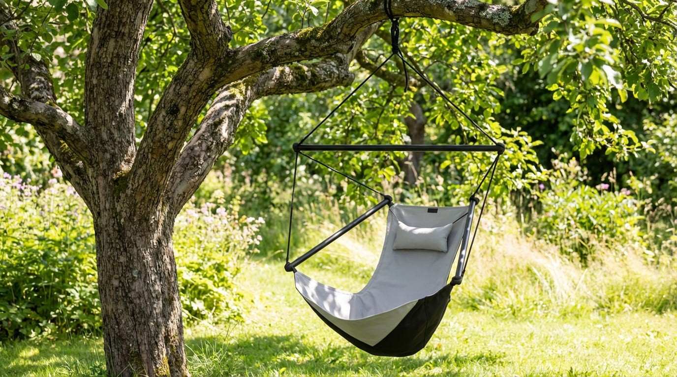 Houpačku zavěste na pevný a nosný bod (trám, pergolu, větev stromu nebo vhodně kotvený strop).