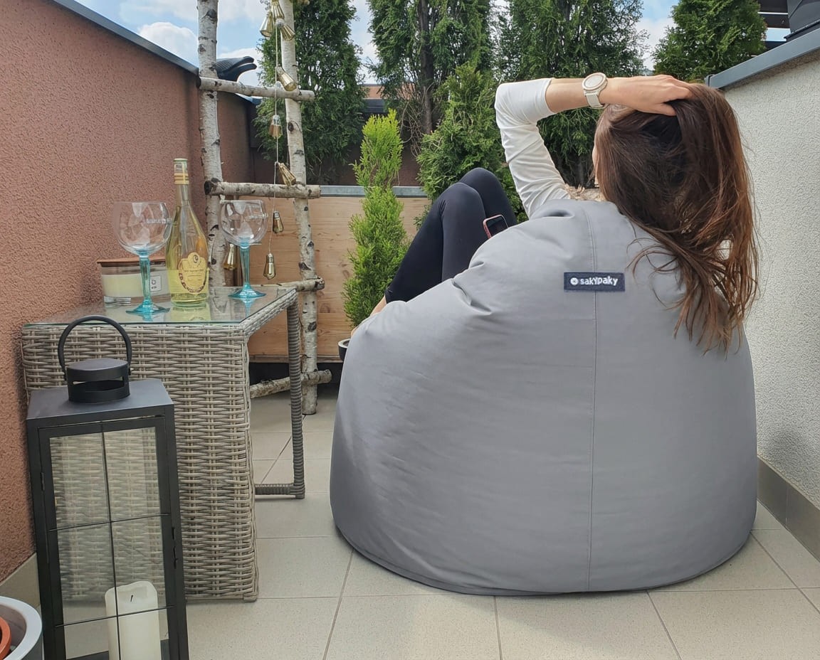 Sedací vak navržený pro venkovní použití.