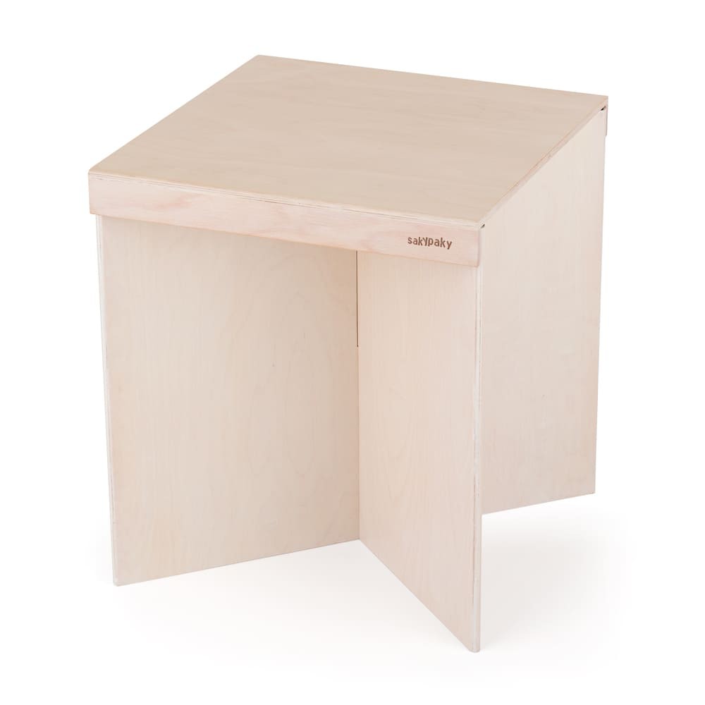 Stolek se jednoduše složí zasunutím desek do sebe. Bez další potřebné montáže. Podstavec tak lze kdykoliv jednoduše rozebrat a znovu složit. Praktický a skladný. Díky velikosti 45 × 45 cm a výšce 50 cm ho navíc přenesete kamkoli, kde je zrovna potřeba.